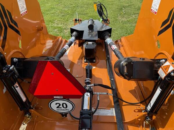 Woods BW10.30 flex wing rotary cutter. 10′ cutting width. 4 foam filled tires (21×7-12). Chain deflectors, stump jumpers. Stroke control spacers included. 10 year limited gearbox warranty. $15,200