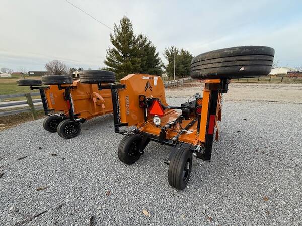 2026 Woods BW12.40 rotary cutter. 540 CV driveline. Rated for 2.5″ cut capacity. 12′ mowing width. Includes 4 foam filled airplane tires (25.4×8-14). 160 HP splitter gearbox and 100 hp spindle gearboxes. 10 year limited gearbox warranty. $17,400