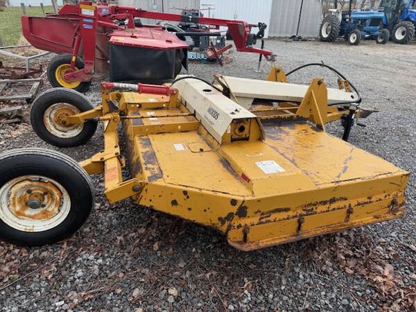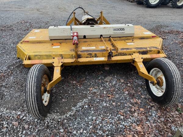 Woods 121 Rotary Cutter. 10′ cut. Pintle hitch, new air filled tires, slip clutch protection on driveline. $3850